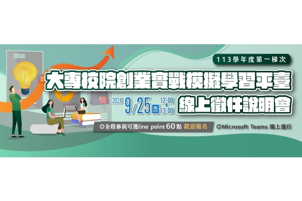 113學年度第一梯次【大專校院創業實戰模擬學習平臺 】線上徵件說明會