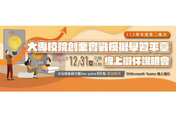 113學年度第二梯次【大專校院創業實戰模擬學習平臺 】線上徵件說明會